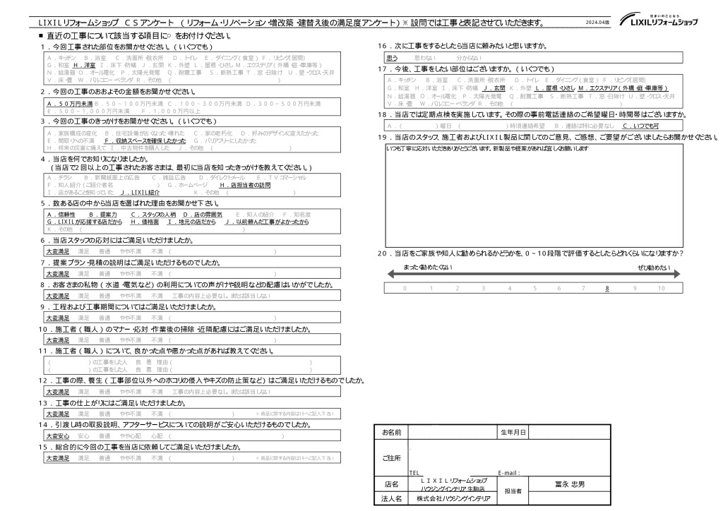 ・信頼性 ・提案力 ・スタッフの人柄 ・店の雰囲気 ・LIXILが応援する店だから ・価格面 ・地元の店だから ・以前頼んだ工事がよかったから