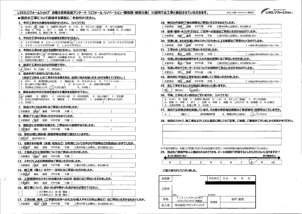 当店のスタッフ、施工者およびLIXIL製品に関してのご意見、ご感想、ご要望
